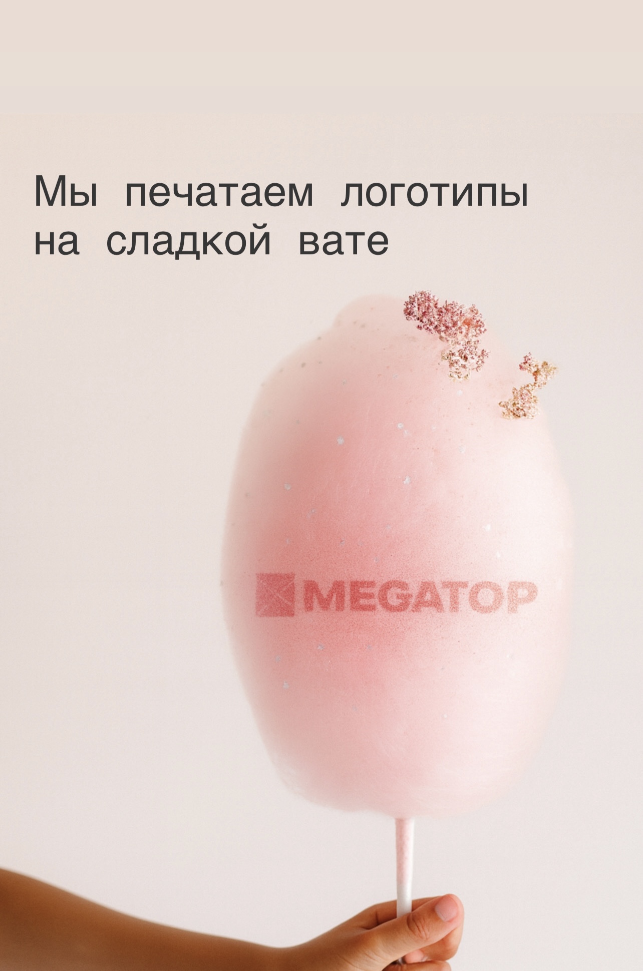 Мы наносим логотип или надпись прямо на сладкую вату